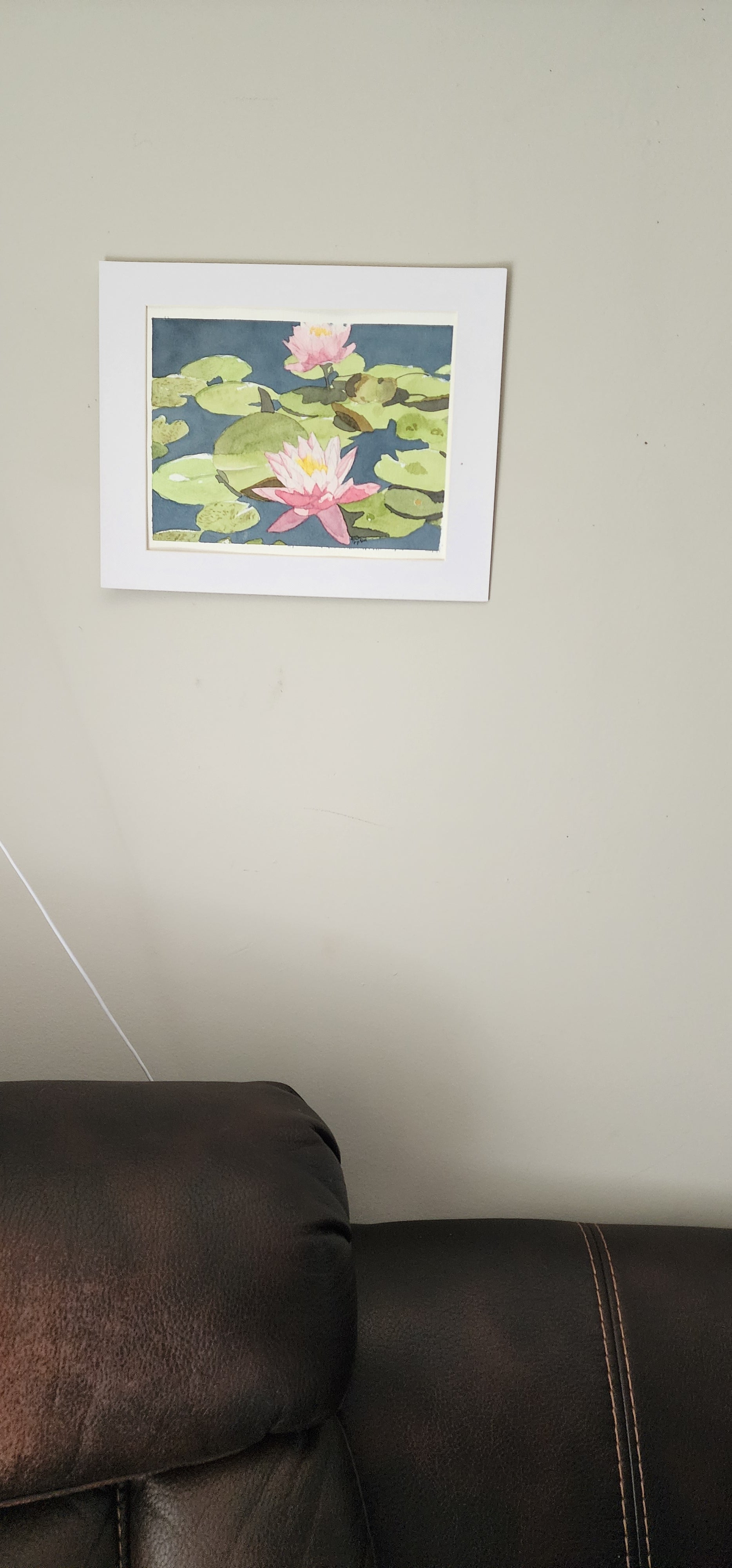 Original 9x12 watercolor painting of water lilies on 100% cotton paper. Inspired by river traveling. A serene floral piece for nature and art lovers.